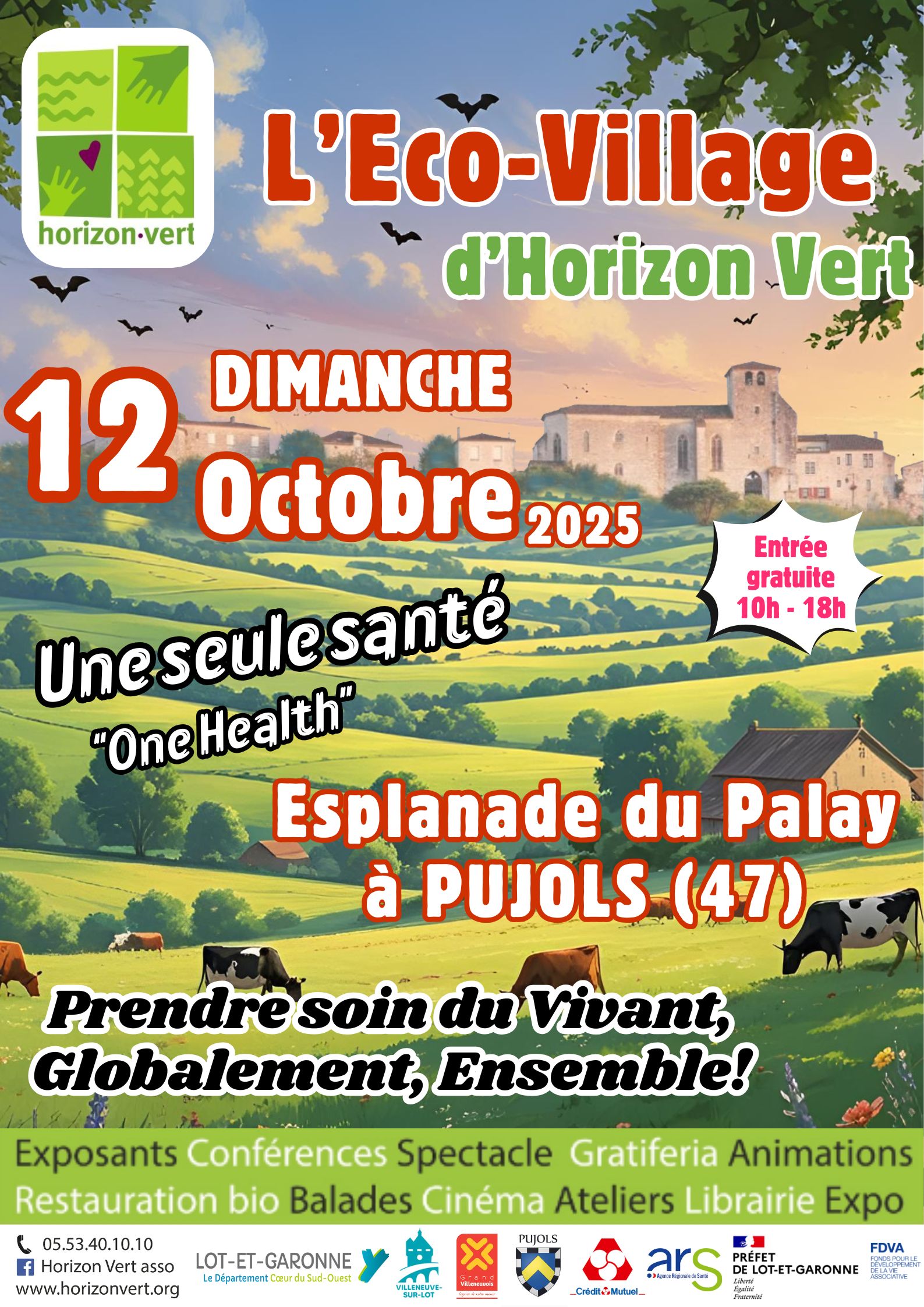Toutes les conférences sont gratuites en accès libre à la Salle du Palay de Pujols (47300) pendant l’Eco-Village d’Horizon Vert Dimanche 12 Octobre